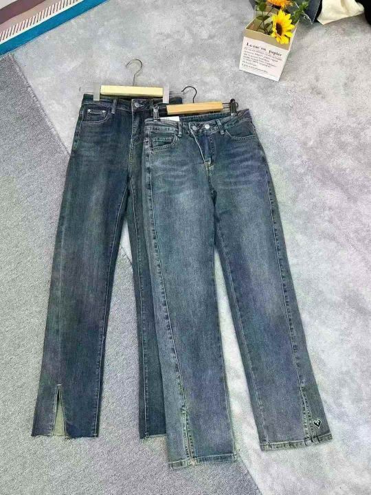 全清13.8开叉牛仔裤女高腰2025春秋新款修身显瘦高弹力百搭垂感拖地裤潮3个...
