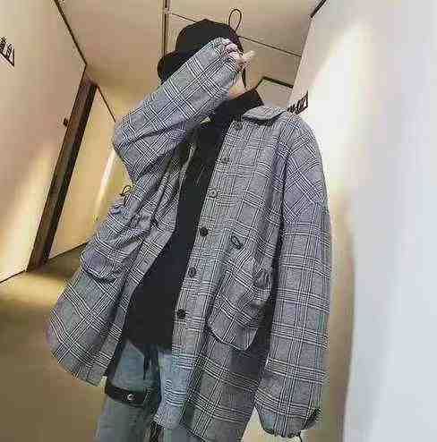 秋季新款男女同款韩版格子宽松中长款夹克风衣外套,独立包装带吊牌,码数S-...