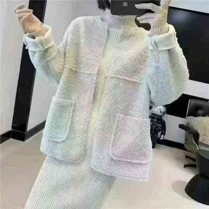 秋冬两面穿羊剪绒大衣女欧洲站皮毛一体宽松羊羔毛短外套,可两面穿,整款3...
