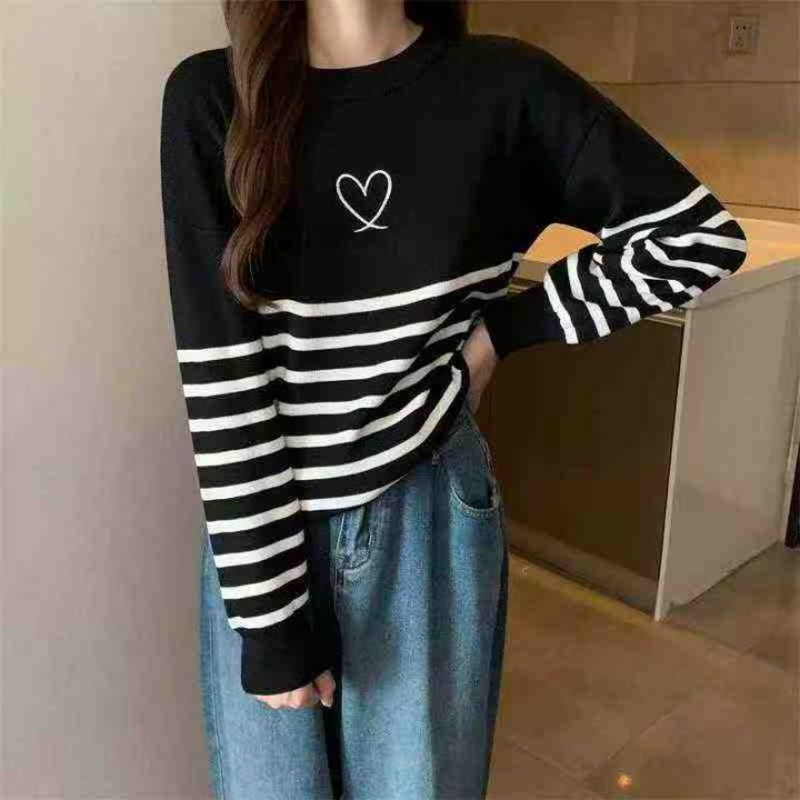 秋冬新款宽松慵懒风爱心提花圆领套头毛衣,独立包装,均码,面料柔软舒适,...