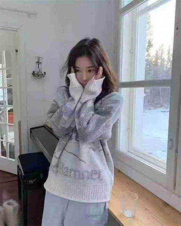 秋冬新款刺绣复古慵懒风圆领撞色宽松百搭套头毛衣,独立包装,均码面料软糯...