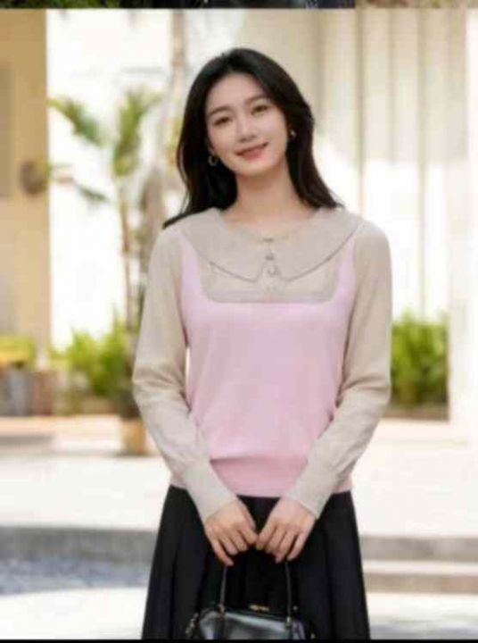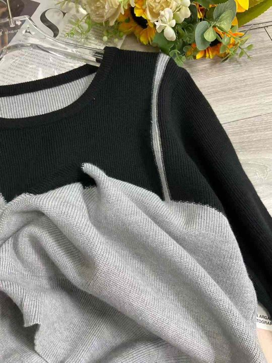 捡漏款,秋季新品小香风假2件针织套头毛衣,独立包装,均码面料柔软舒适弹...