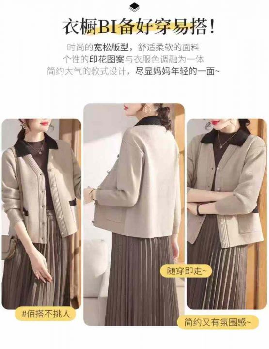 早秋新款小香风撞色翻领温柔风减龄百搭宽松显瘦毛衣开衫,独立包装,均码宽...