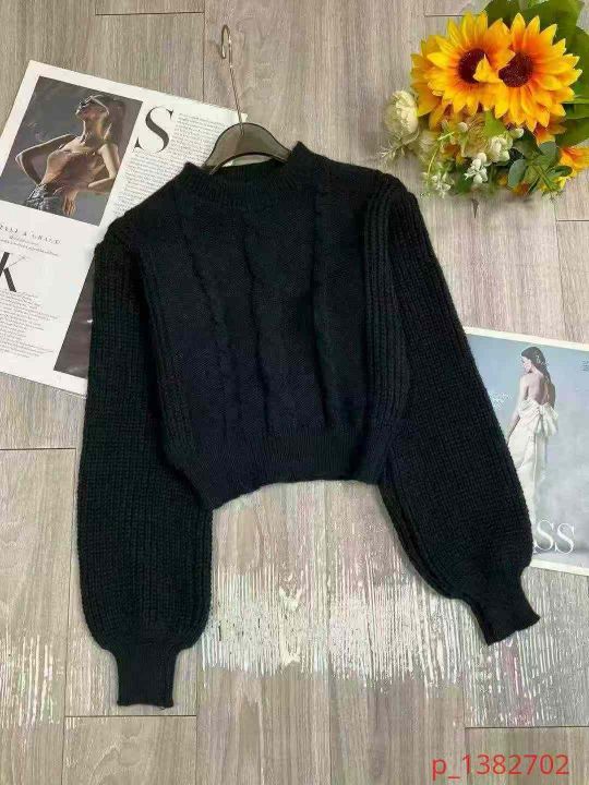 秋冬新款纯色麻花加厚短款宽松套头毛衣,独立包装带吊牌,均码面料软糯厚实...