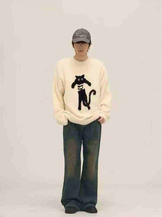 12.8清81件品牌圆领毛衣,秋冬季潮牌植绒字母针织衫ins韩系情侣宽松套头毛...