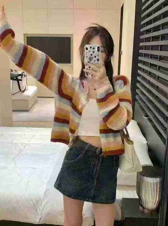 2025秋冬新款潮毛衣女显瘦休闲彩条针织外套开衫,独立包装,均码,418件,...