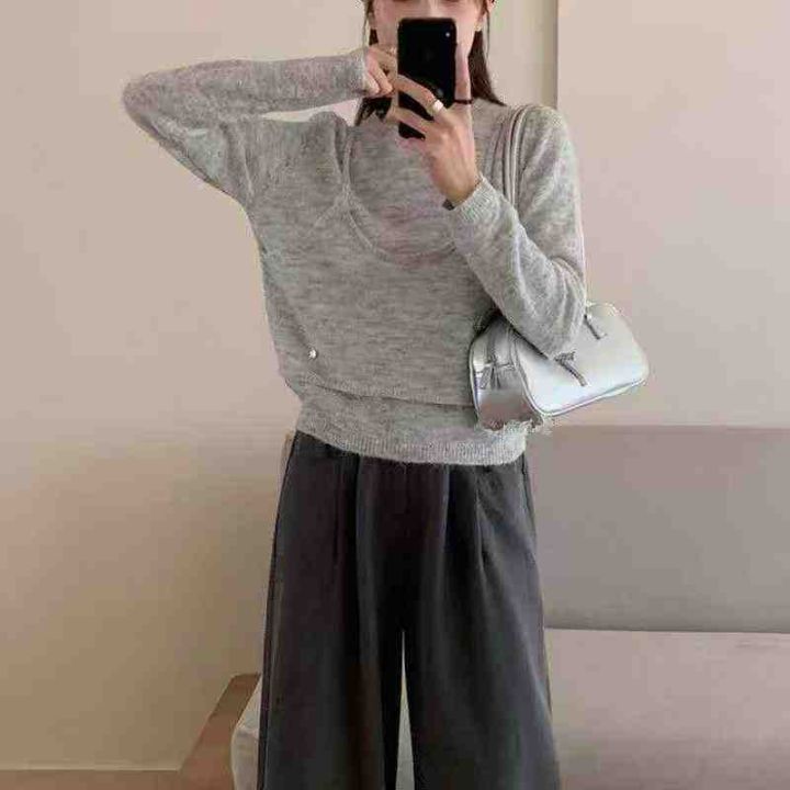 早秋新款假两件宽松慵懒风净版简约套头毛衣,独立包装,均码宽松款面料软糯...