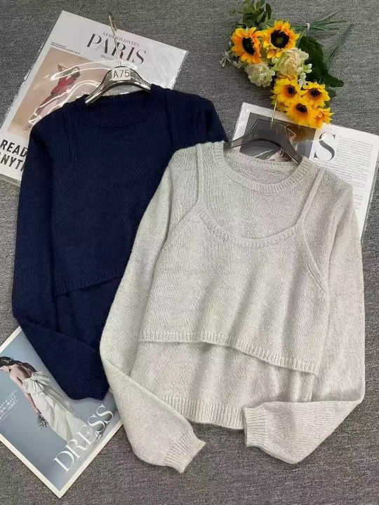 早秋新款假两件宽松慵懒风净版简约套头毛衣,独立包装,均码宽松款面料软糯...