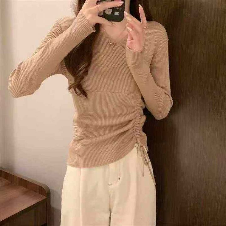 春秋新款网红设计感小众不规则洋气弹力修身显瘦坑条包芯纱套头毛衣,独立包...