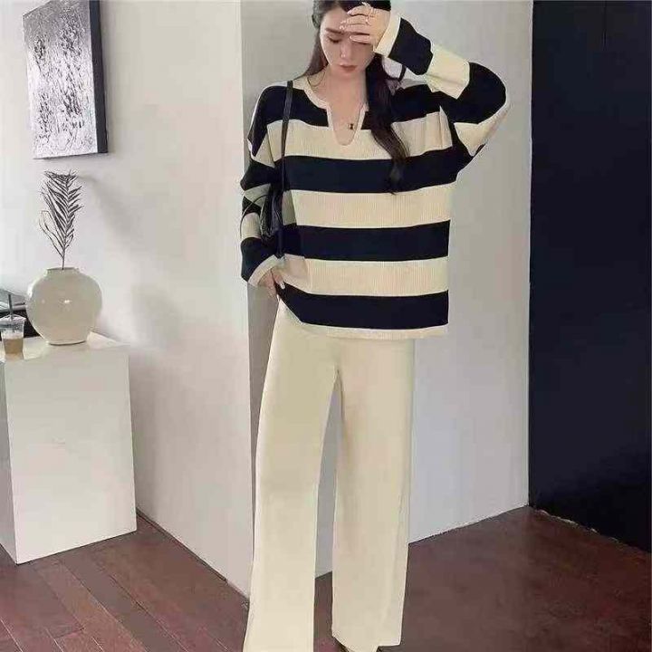 春季新款时尚洋气显瘦韩系撞色条纹宽松百搭套头毛衣,独立包装,均码面料柔...
