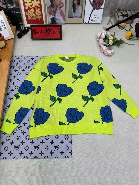圆领玫瑰印花毛衣针织衫秋冬季新款百搭宽松套头毛衣,独立包装,去80件左右...