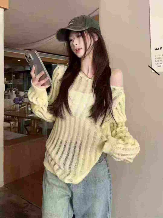 春夏季新款韩系纯欲镂空短款针织衫,独立包装,均码面料柔软舒适有弹力,19...
