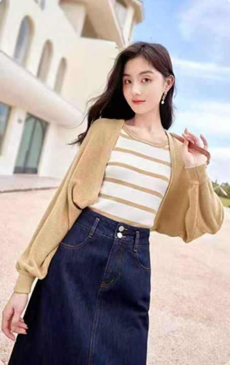 春夏季新款净版宽松简约百搭灯笼袖针织毛衣开衫外套,独立包装,均码面料柔...