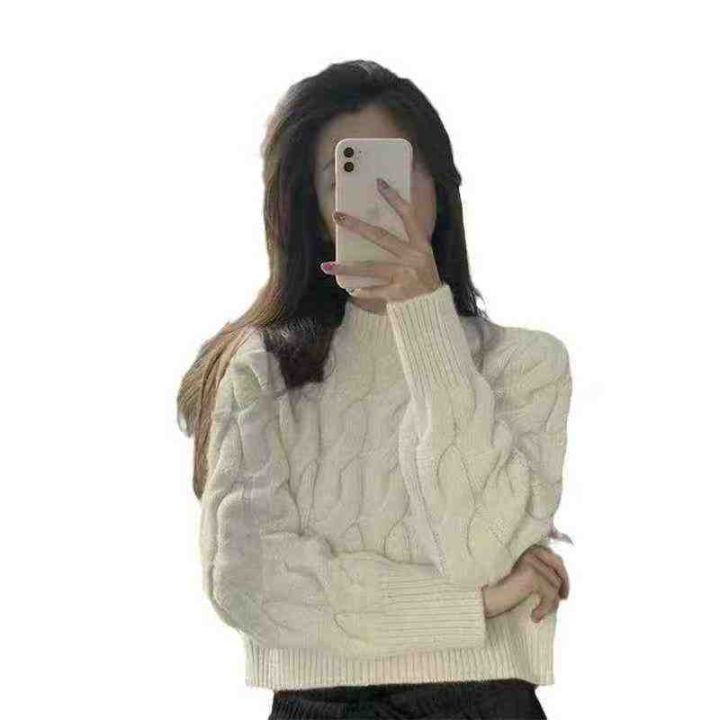 电商在售麻花毛衣春秋新款高腰套头针织衫慵懒风,面料柔软,独立包装,均码...