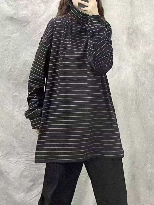 原创复古高领条纹秋冬高级感时髦时尚洋气大码包芯纱套头毛衣,均码宽松大版...
