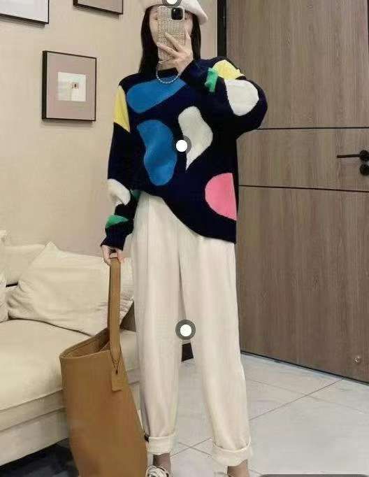 捡漏款,秋冬新款慵懒风宽松提花大版圆领套头毛衣,独立包装,码数ML码,38...