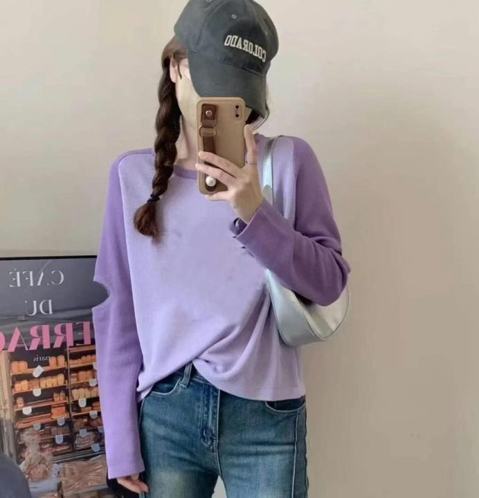 早秋新款复古美式小众破洞设计款宽松撞色百搭针织套头毛衣,独立包装,均码...