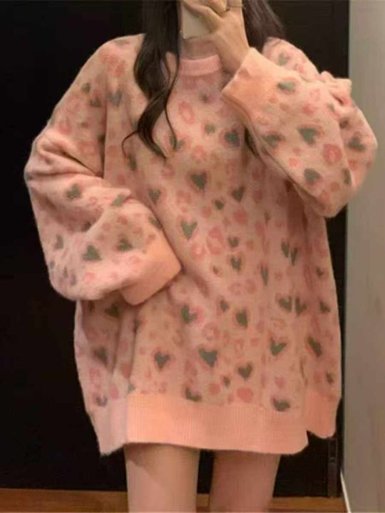 秋冬新款宽松复古韩版洋气慵懒风北极绒提花圆领套头毛衣,独立包装,均码大...