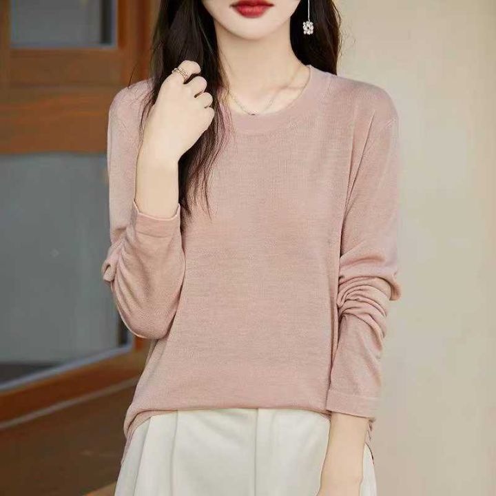 春夏新款韩版冰丝高弹力修身显瘦薄款针织小衫,独立包装的,单款多色,黑色...