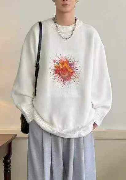 秋冬新款加厚印花男女同款宽松慵懒风北极绒套头毛衣,独立包装,码数S-2XL ...
