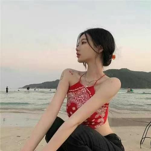 夏季新款性感腰果花挂脖网红辣妹抹胸肚兜,雪纺拼针织,独立包装,均码面料...