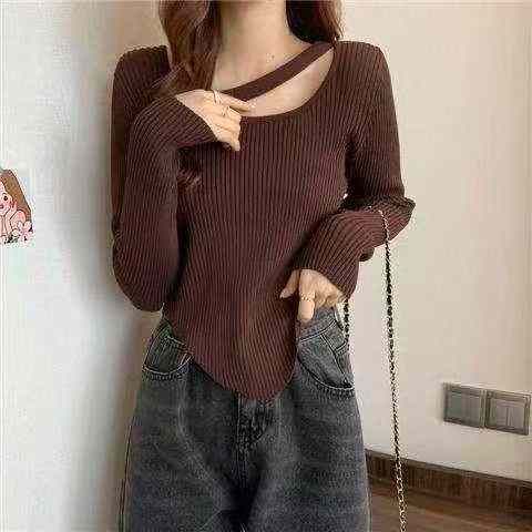 春秋新款网红设计感小众不规则洋气弹力修身显瘦坑条包芯纱套头毛衣,独立包...