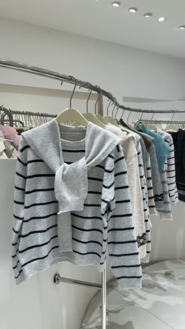 绝美百搭披肩围巾设计款条纹毛衣来啦!这个系列颜值太在线了!条纹控的姐妹...