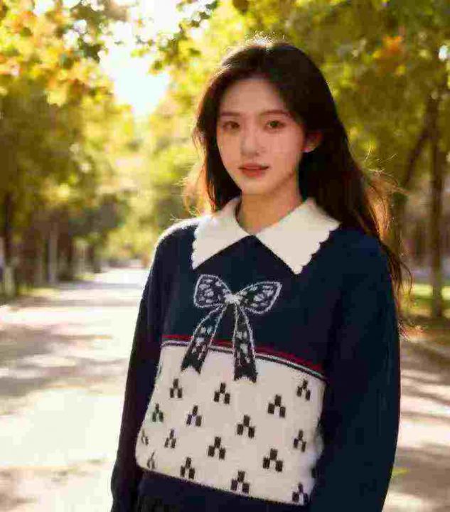 全清12.9,小个子慵懒高级感独特漂亮韩系奶呼呼软糯藏青色针织POLO...