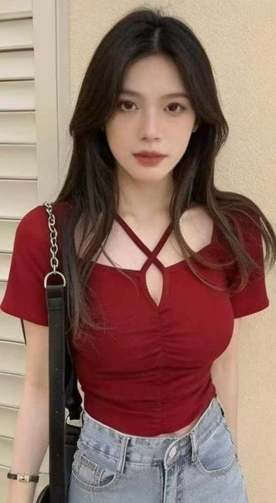 夏季新款纯欲风辣妹性感御姐V领弹力修身显瘦针织衫,独立包装,均码面料柔...