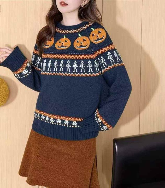 秋冬新款宽松慵懒风大版提花圆领北极绒套头毛衣,独立包装,码数S- 2XL码,...