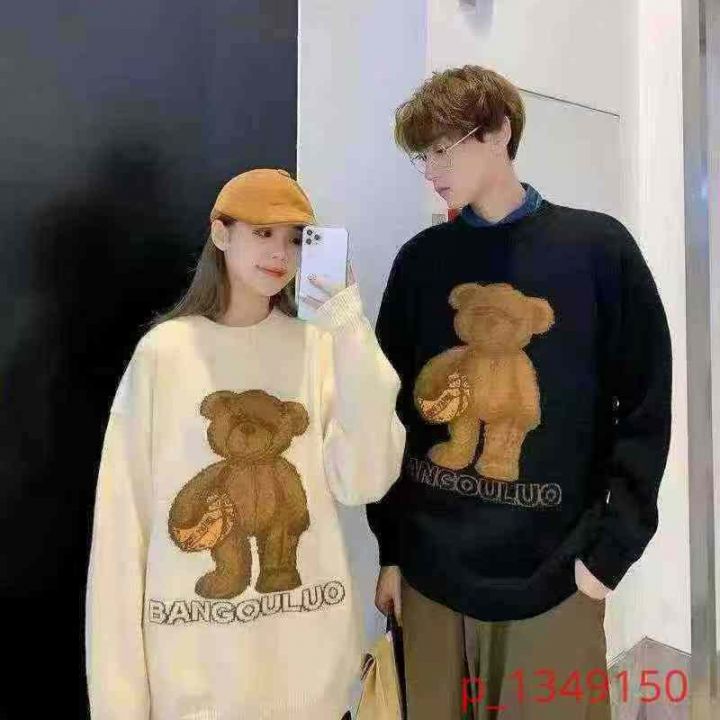 8.8全清,超低价秒杀秋冬新款品牌原单男女同款宽松慵懒风熊熊卡通套头毛衣...
