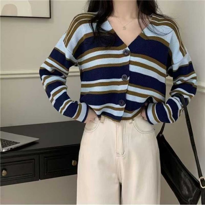 秋季新品软糯撞色条纹宽松慵懒风百搭针织毛衣开衫,独立包装,均码面料软糯...