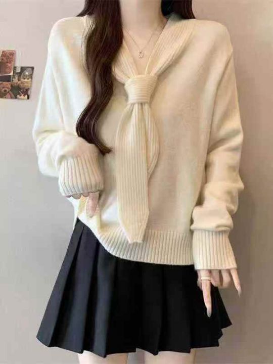 秋季新品韩版V领抽绳设计款包芯纱套头毛衣,独立包装,均码面料软糯舒适弹...