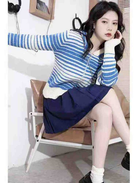秋冬季新品韩版宽松百搭撞色条纹设计款加厚包芯纱套头毛衣,独立包装,均码...