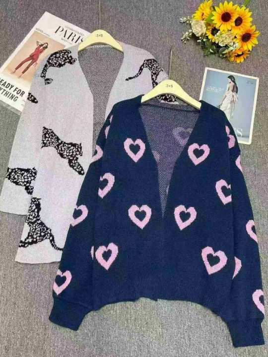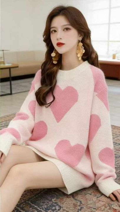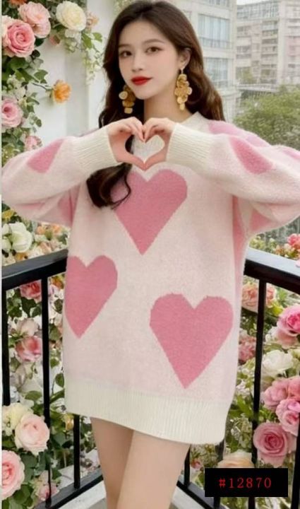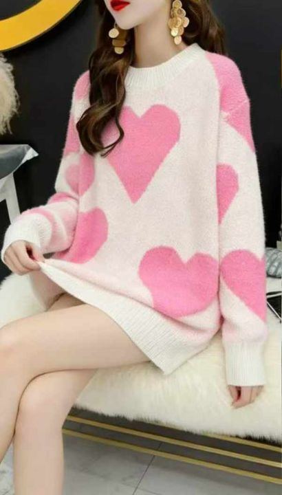 秋冬新款公司原单大版宽松慵懒风爱心提花北极绒套头毛衣,独立包装,码数S-...