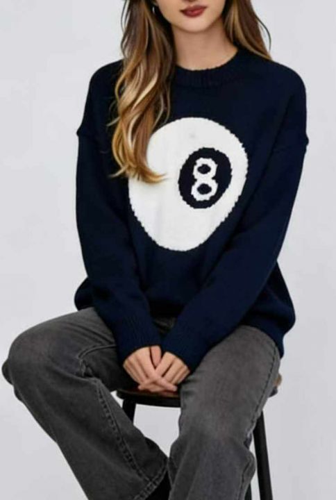 秋冬新款宽松慵懒风百搭印花视频系列款北极绒套头毛衣,独立包装,码数S--2...