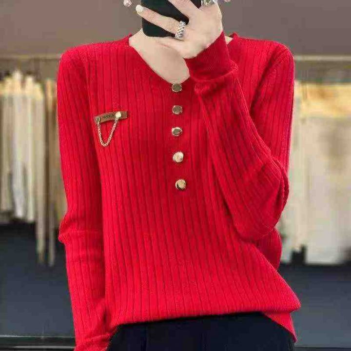 秋冬新款五粒扣v领宽松百搭欧货小皮标设计款包芯纱套头毛衣,独立包装,均...