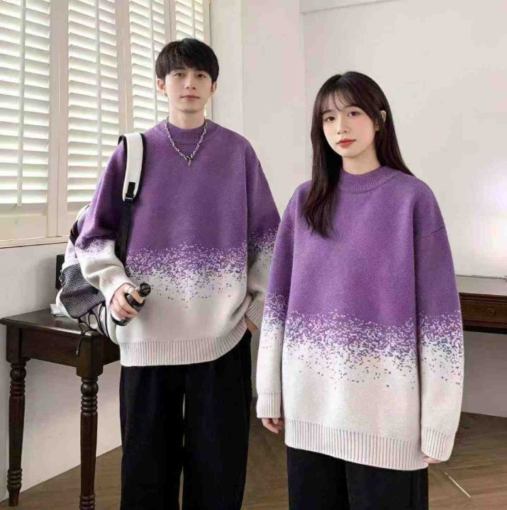 秋冬新款加厚男女同款渐变色圆领套头毛衣,独立包装,均码面料软糯厚实,宽...