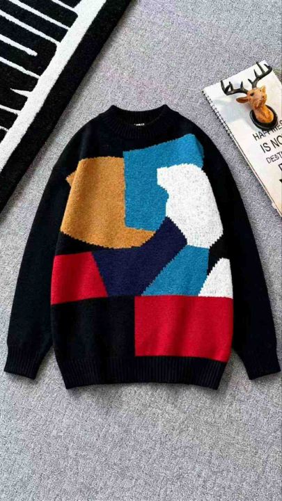 秋冬新款宽松撞色条纹针织方领套头毛衣,独立包装,均码面料柔软舒适弹力大...