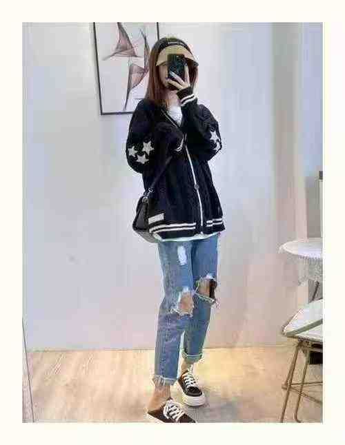 秋冬新款宽松慵懒风刺绣麻花设计款毛衣开衫,独立包装,码数S-2XL码,366件...