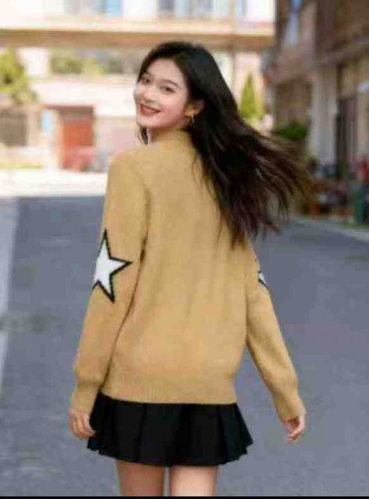 秋冬新款宽松慵懒风百搭星星提花包芯纱套头毛衣,独立包装,均码宽松版,面...