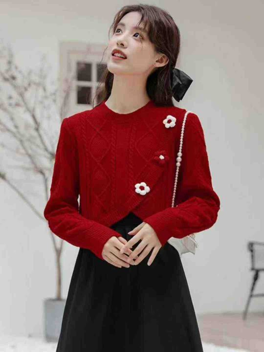 上新全清:¥12.8一件秋冬甜美花朵纽扣不规则减龄包芯纱毛衣,[爱心]241件,...