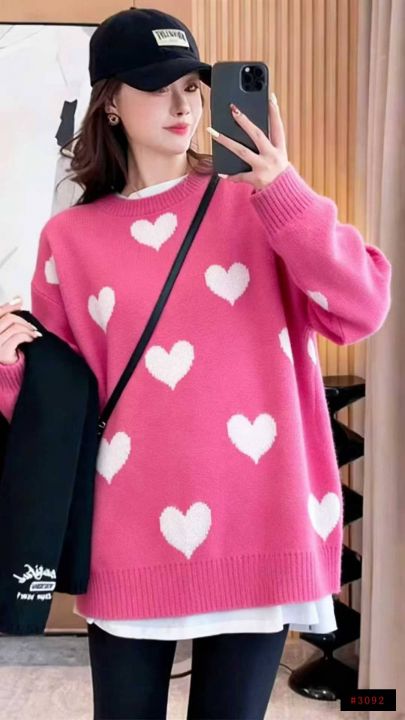 秋冬新款宽松爱心提花中长款遮屁慵懒风北极绒套头毛衣,独立包装,码数S--2...