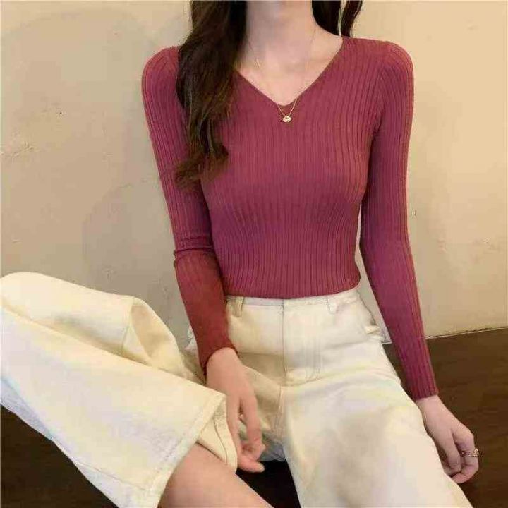 春秋新款网红设计感小众不规则洋气弹力修身显瘦坑条包芯纱套头毛衣,独立包...