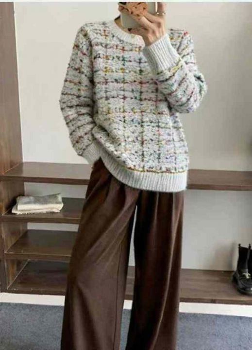 秋冬新款设计感彩线软糯宽松慵懒风加厚甜美显瘦减龄圆领套头毛衣,独立包装...