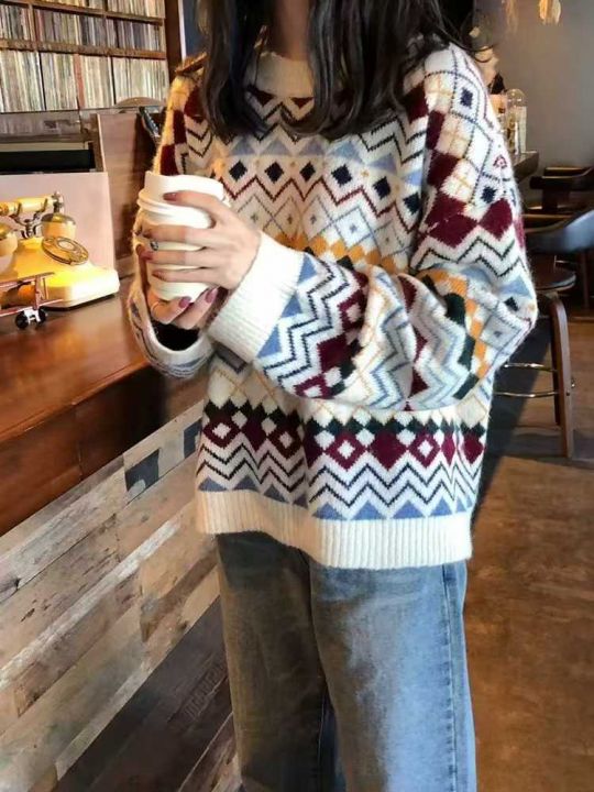 秋季新款港味复古提花加厚包芯纱套头毛衣,独立包装,均码面料柔软舒适弹力...