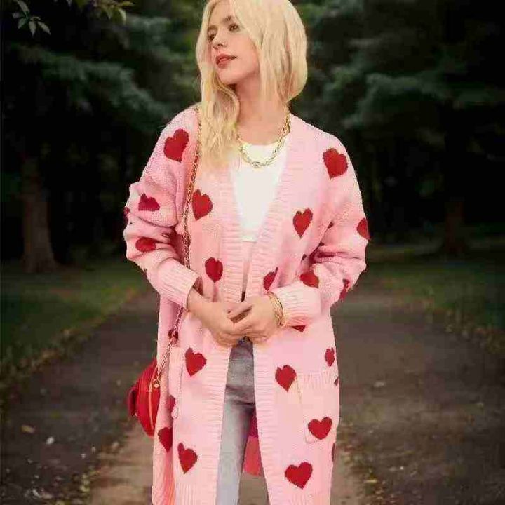85件左右秋冬新款爱心针织开衫口袋V领中长款毛衣开衫外套,均码!独立包装...