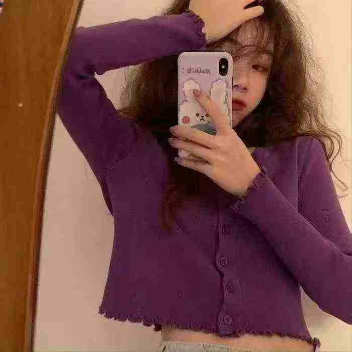秋季新品净版简约木耳边多巴胺针织毛衣开衫,独立包装,均码面料柔软舒适弹...