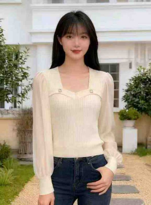 秋季新品小香风雪纺拼接针织套头毛衣,独立包装,面料柔软舒适,单款2色,1...