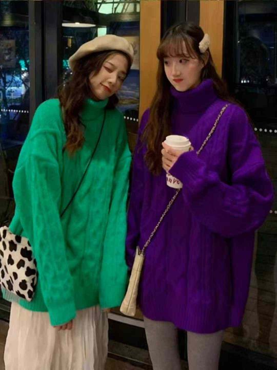 冬季新款韩版宽松慵懒风加厚高领麻花套头毛衣,独立包装,码数S-2XL码,460...